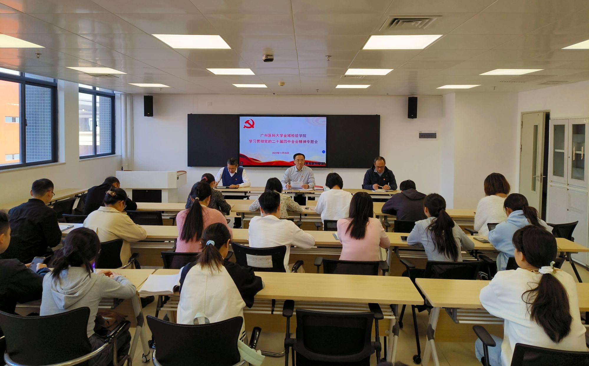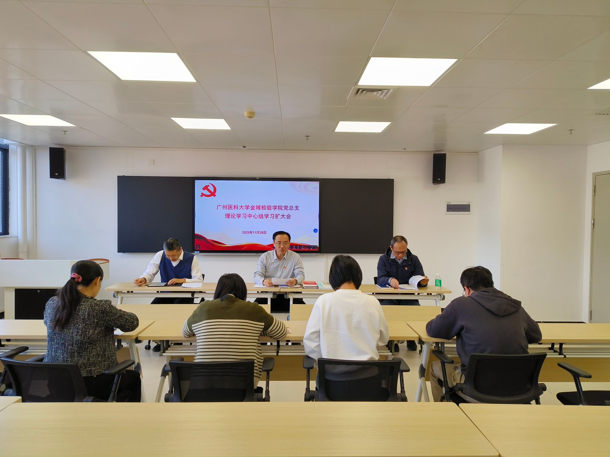 根据学校党委工作部署,11月28日,广州医科大学金域检验学院党总支理论学习中心组召开专题学习扩大会,深入学习《中国共产党第二十届中央委员会第四次全体会议公报》(以下简称《公报》)、《中共中央关于制定国...