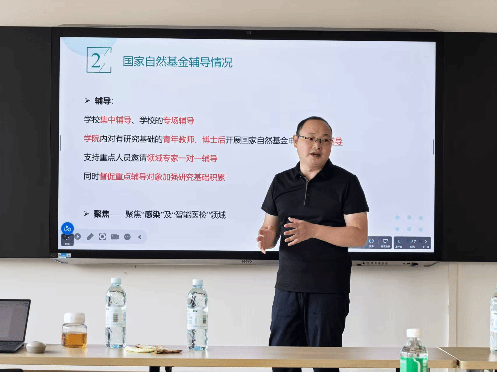 学院科研办王立富主任作了学院2025年国自然申报情况汇报,以详实的数据,全面梳理了本年度学院申报国自然项目的项目类型、学科分布及项目辅导情况等,深入剖析了学院国自然申报过程中的经验与不足,为下一阶段学院国自然的组织申报提出了方向建议。