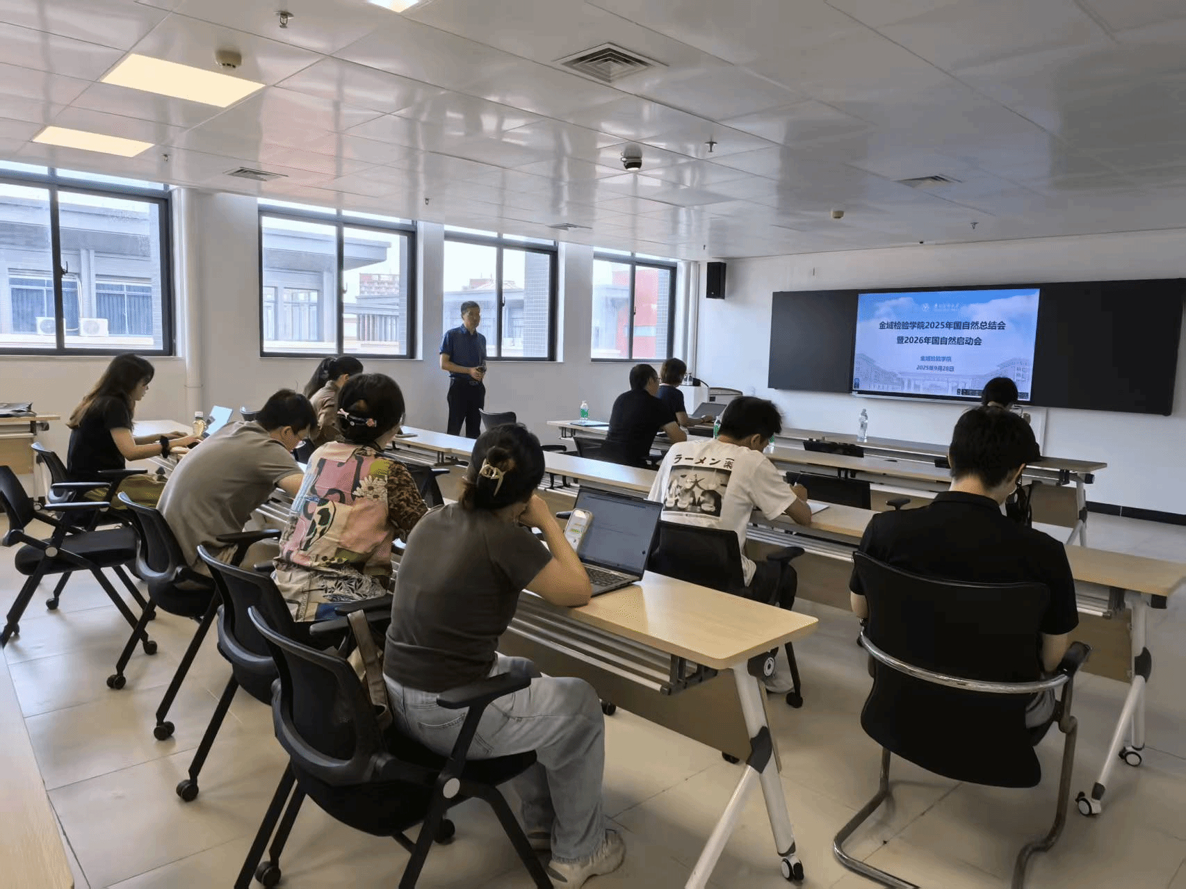 本次会议标志着金域检验学院2026年度国家自然科学基金申报工作正式启动。后续,学院将通过分阶段组织专题培训及专家辅导,为科研人员提供全方位支持,力争实现基金项目新突破。