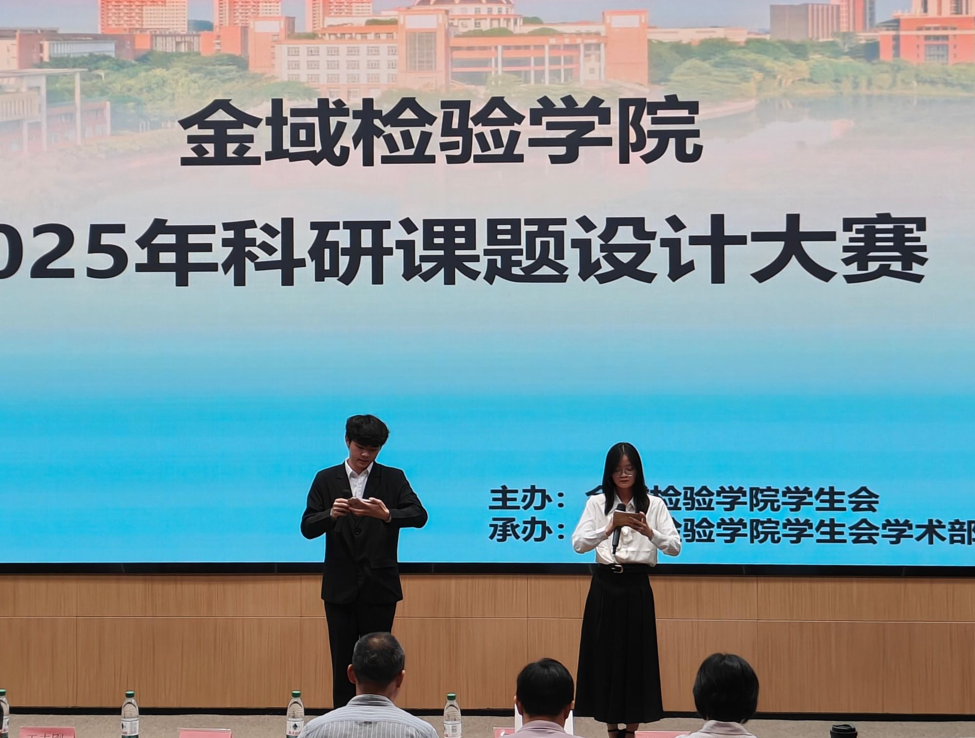 根据金域检验学院2025年工作安排,为激发全院学生的科研积极性与创新主动性,10月30日,学院2025年科研课题设计大赛在番禺校区学术交流中心302会议室举行。学院副院长邓小燕教授、副院长王志刚教授、教学实验中心主任袁文常教授、临床微生物检验教研室主任寇晓霞教授、王斗教授担任大赛评委。学院党总支副书记张迪、学生办主任刘剑霞副教授、教学办郭飞翔老师以及学院2023、2024、2025级本科学生300余人参加此次活动。大赛由魏欣馨同学、甘泽佳同学主持。