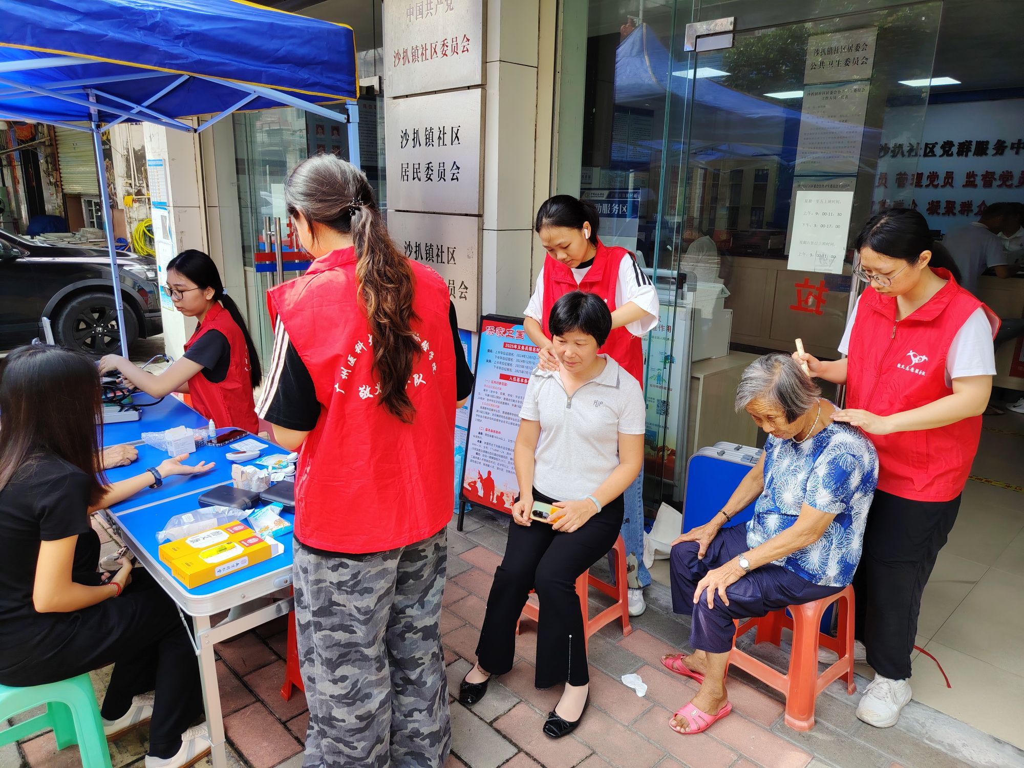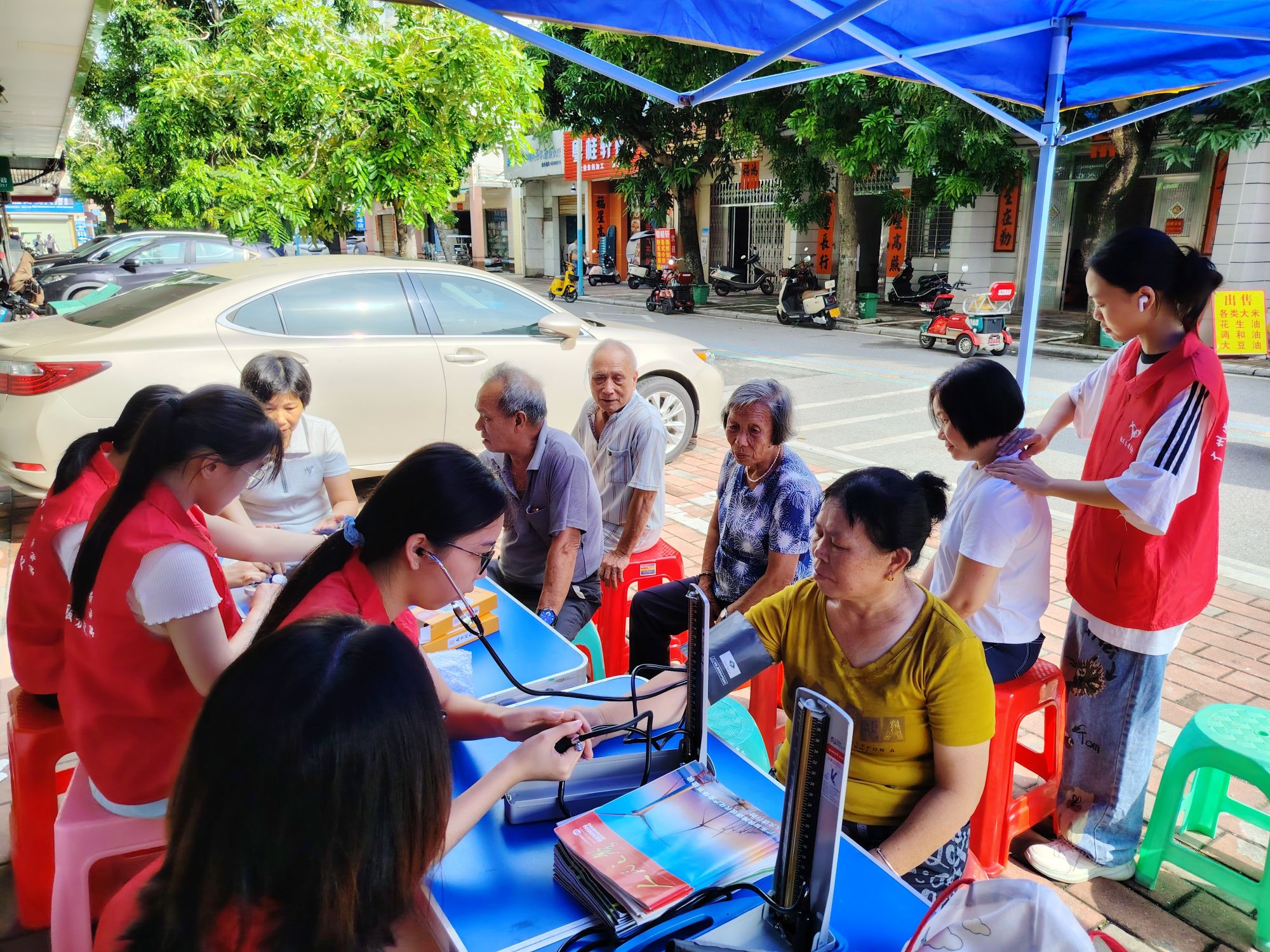 8月7日,在沙扒镇党组织的协助下,实践团深入当地社区开展公益义诊活动。师生们发挥专业特长,为居民提供血压测量、血糖检测、中医艾灸、康复按摩等服务,耐心解答健康咨询,普及常见病预防知识,倡导健康生活方式。并围绕“百千万工程”开展政策宣讲,深入浅出地讲解其在推动城乡协调发展、改善民生福祉等方面的重要作用。