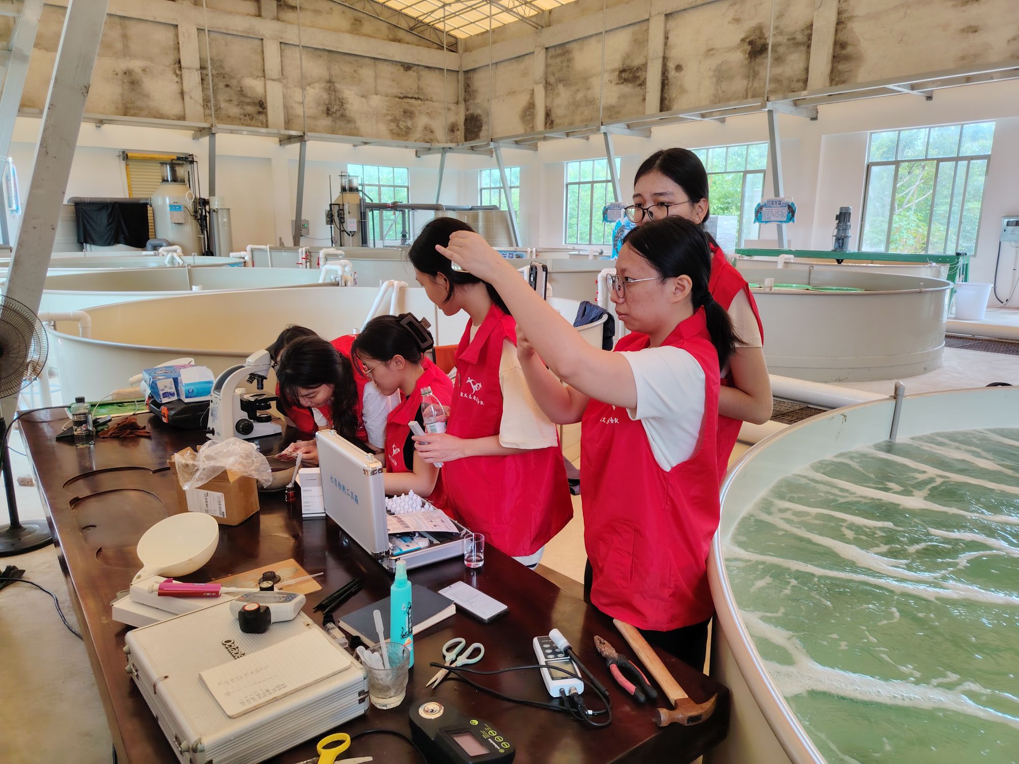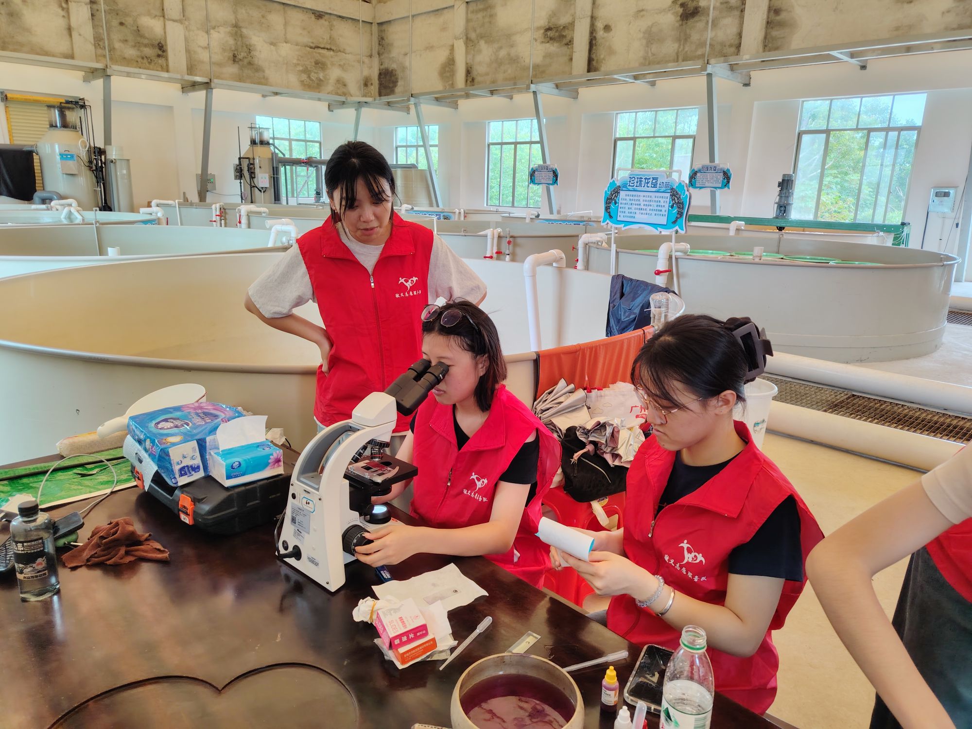 在理化环节,队员们严格按规程完成采样与预处理,使用余氯试剂、pH试剂通过比色、滴定获取精准数据;在微生物环节,队员们耐心调节显微镜焦距,仔细辨认菌落形态并拍照存档。全过程分工明确、配合默契,团队现场出具评估报告,并与企业研讨防控方案,为海水养殖提质增效注入“科技动能”。