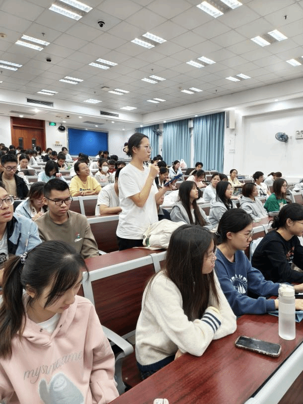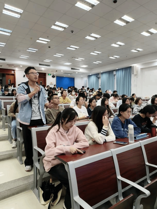 在交流互动环节,同学们积极向王志刚教授提问,和王教授交流探讨关于全会精神践行、AI与医学检验结合的疑问与思考。