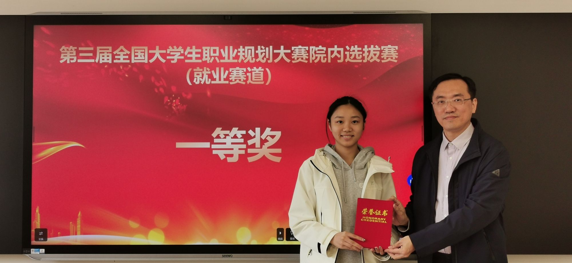 学院党总支书记曾王兴为“就业”赛道一等奖:陈瑶同学颁奖