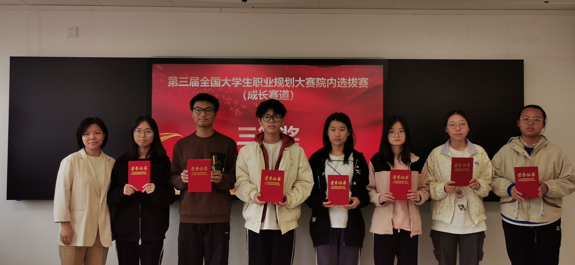 学院学生办主任刘剑霞为“成长”赛道三等奖:韦淑贤、黄昱锜、李世文、王睿、魏欣馨、熊丽敏、崔泓静等7位同学颁奖