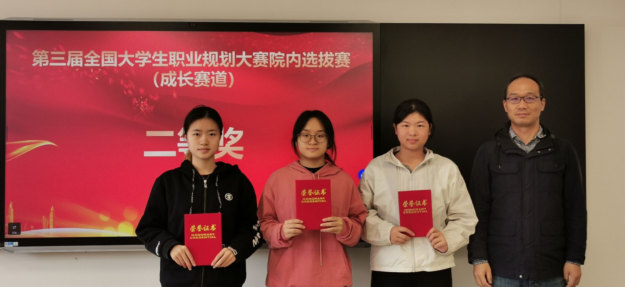 学院党总支副书记张迪为“成长”赛道二等奖:梁师睿、邓诗颖、黄荷露等3位同学颁奖
