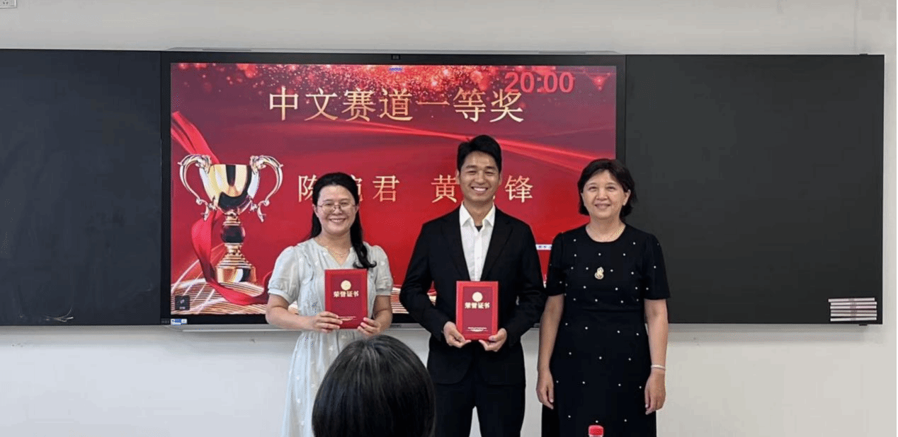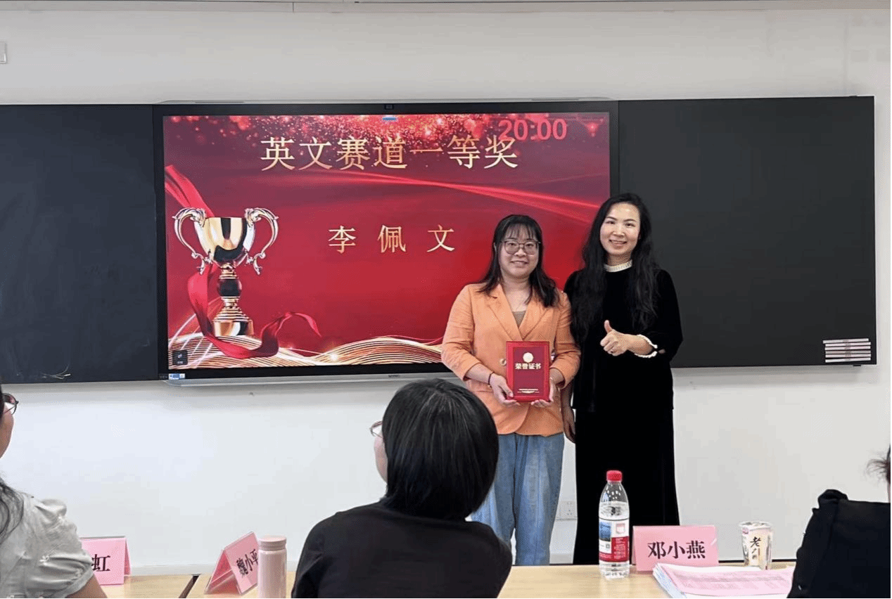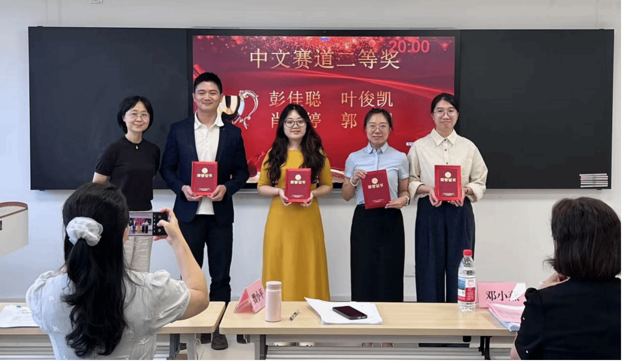 (邓小燕教授为中文组一等奖获奖选手颁发证书)