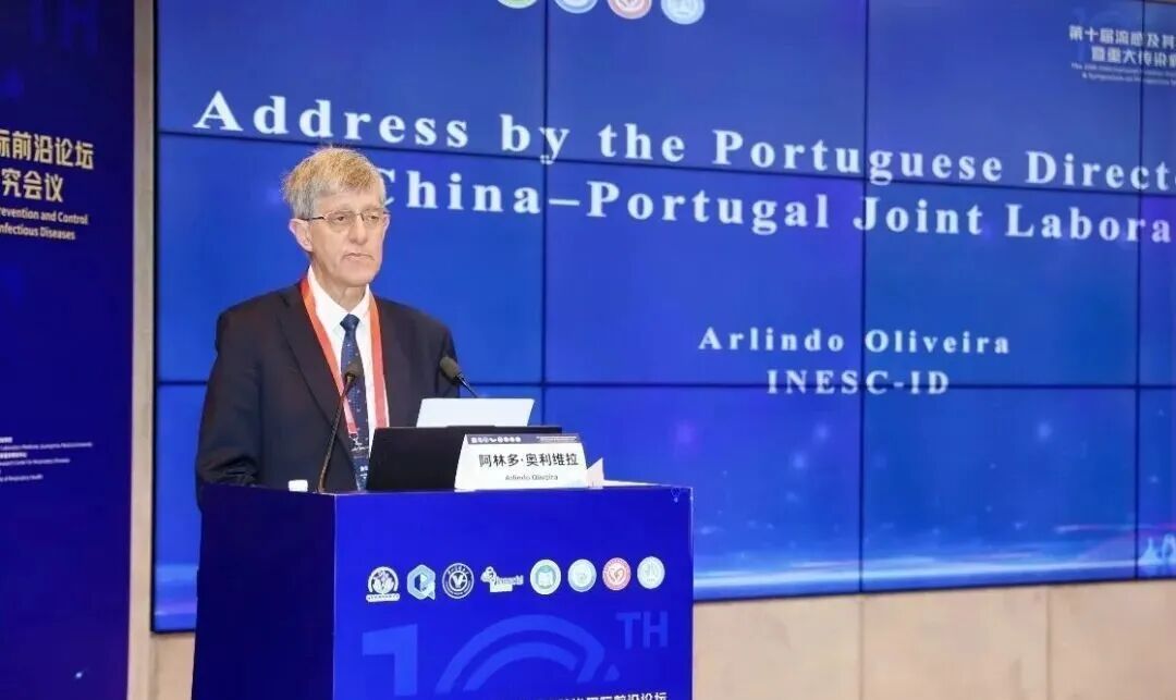 大会主席、中葡联合实验室葡方主任、葡萄牙系统与计算机工程研究所阿林多·奥利维拉主任致辞,他表示葡萄牙在人工智能、数据分析与公共卫生技术领域拥有长期积累,中方在呼吸道疾病防控、临床研究与大规模公共卫生实践方面经验丰富,共建中葡联合实验室及共同举办本次国际论坛是双方优势互补、紧密协作的体现。自联合实验室启动建设以来,中葡双方稳步推进学术交流与科研合作,不断探索人工智能在传染病预警、公共卫生决策等场景的创新应用。通过本次论坛,中葡双方将进一步凝聚共识、拓展合作,共同推动技术创新与成果转化,为提升全球呼吸道病毒防治水平贡献智慧与方案。