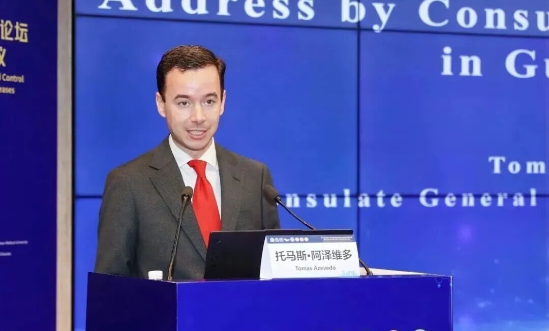 葡萄牙驻广州总领事馆总领事托马斯·阿泽维多先生在致辞中表示祝贺本次论坛成功举办,并充分肯定了中葡在医学与科研领域的合作成果。他指出,人工智能正深刻推动医疗健康变革,双方在公共卫生与传染病防控方面合作前景广阔,并表示将持续支持中葡人文与学术交流与协作。
