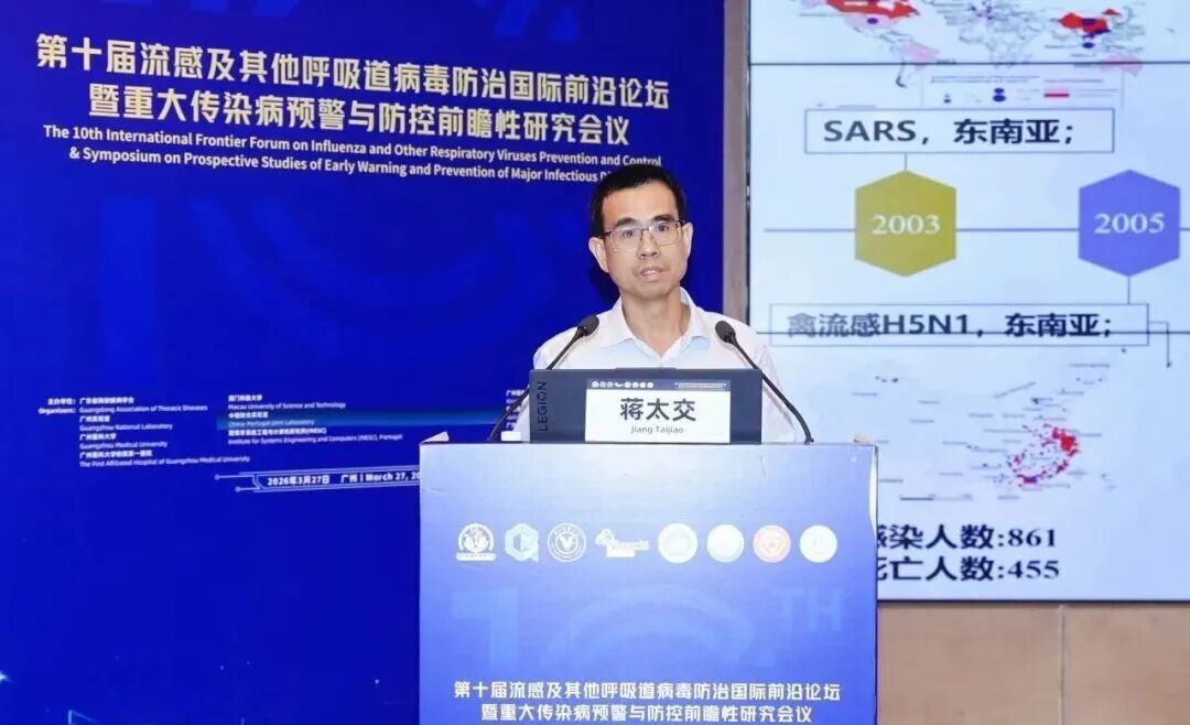 2026年3月27日,由广东省胸部疾病学会、广州国家实验室、广州医科大学、广州医科大学附属第一医院、澳门科技大学、中国-葡萄牙人工智能与公共卫生技术联合实验室(以下简称“中葡联合实验室”)、葡萄牙系统与计算机工程研究所(INESC)、广州医科大学金域检验学院、呼吸系统疾病国家临床医学研究中心、广州呼吸健康研究院联合主办的“第十届流感及其他呼吸道病毒防治国际前沿论坛暨重大传染病预警与防控前瞻性研究会议”在广州医科大学金域检验学院生物岛院区隆重举行。来自中国内地、港澳地区,以及葡萄牙、巴西、澳大利亚、马来西亚等中外顶尖专家学者齐聚一堂,共同探讨大数据和AI时代下全球重大传染病预警预测、分享全球公卫大数据治理与挖掘技术和应用、讨论全国防控一线实验室诊断和治疗的最新动态,以合作促进科技发展,用科技筑牢人民健康防线。